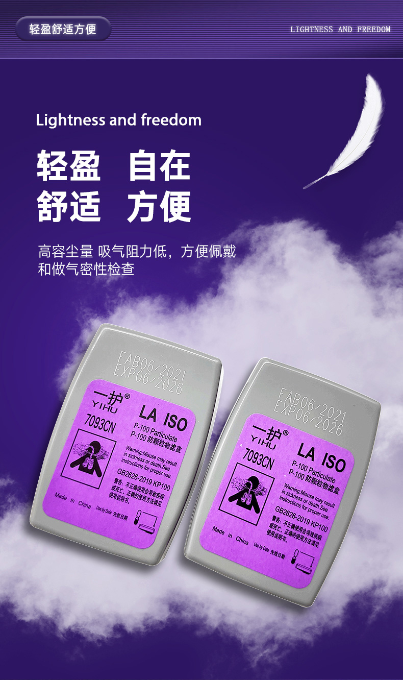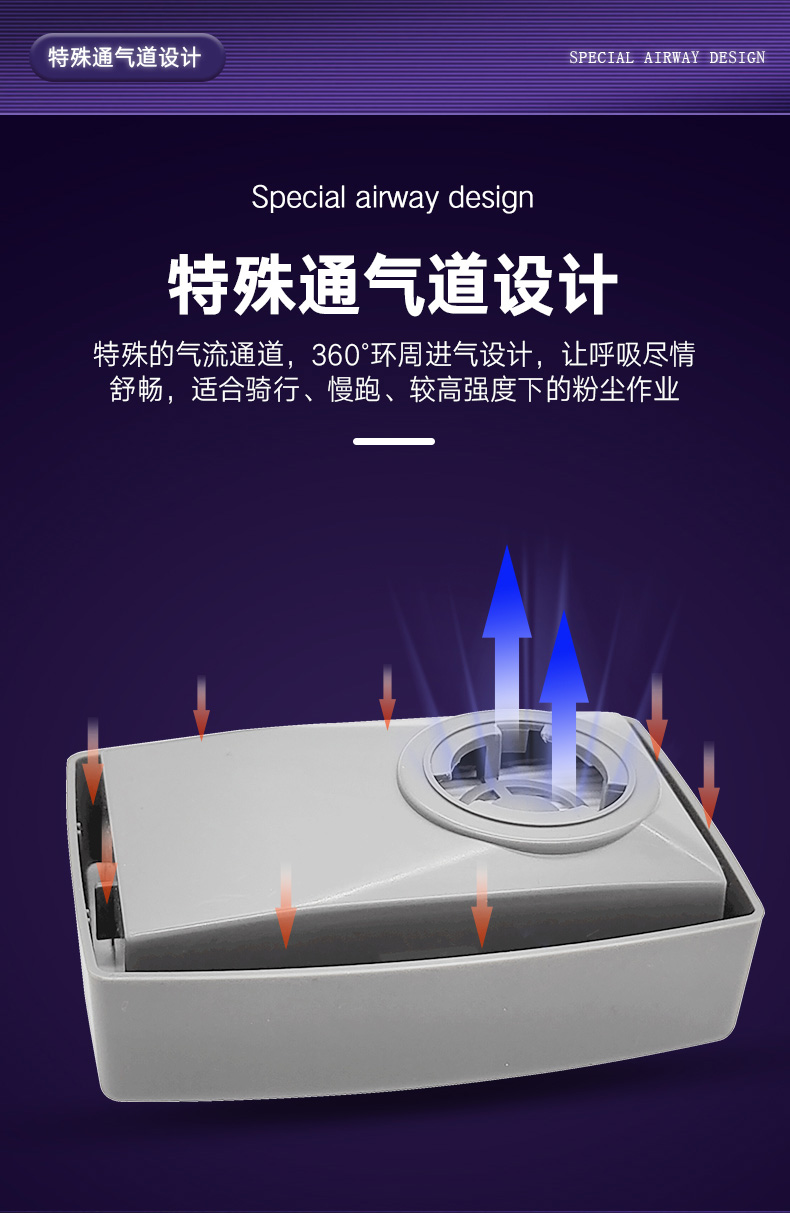 高容塵量、吸氣阻力低、特殊彈性裝置、方便佩戴
