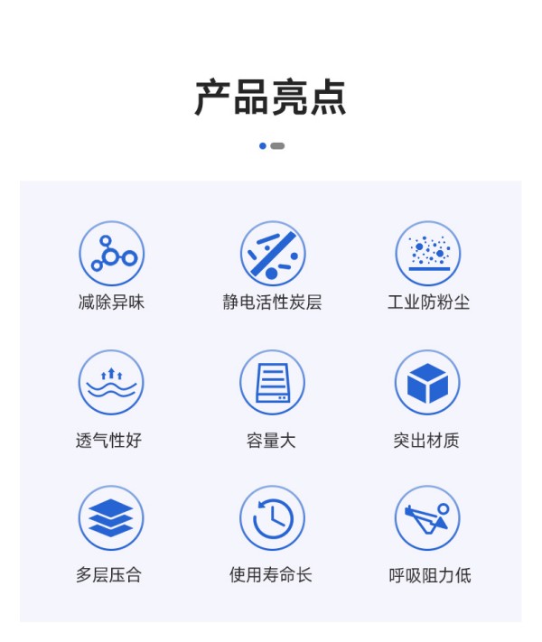 減除異味、靜電活性炭層、工業(yè)防粉塵、透氣性好、容量大、突出材質(zhì)、多層壓合、使用壽命長、呼吸阻力低